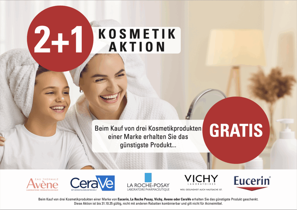 Nur in unseren Apotheken und nur bis 31.10.2025: 2+1 Kosmetik Aktion.